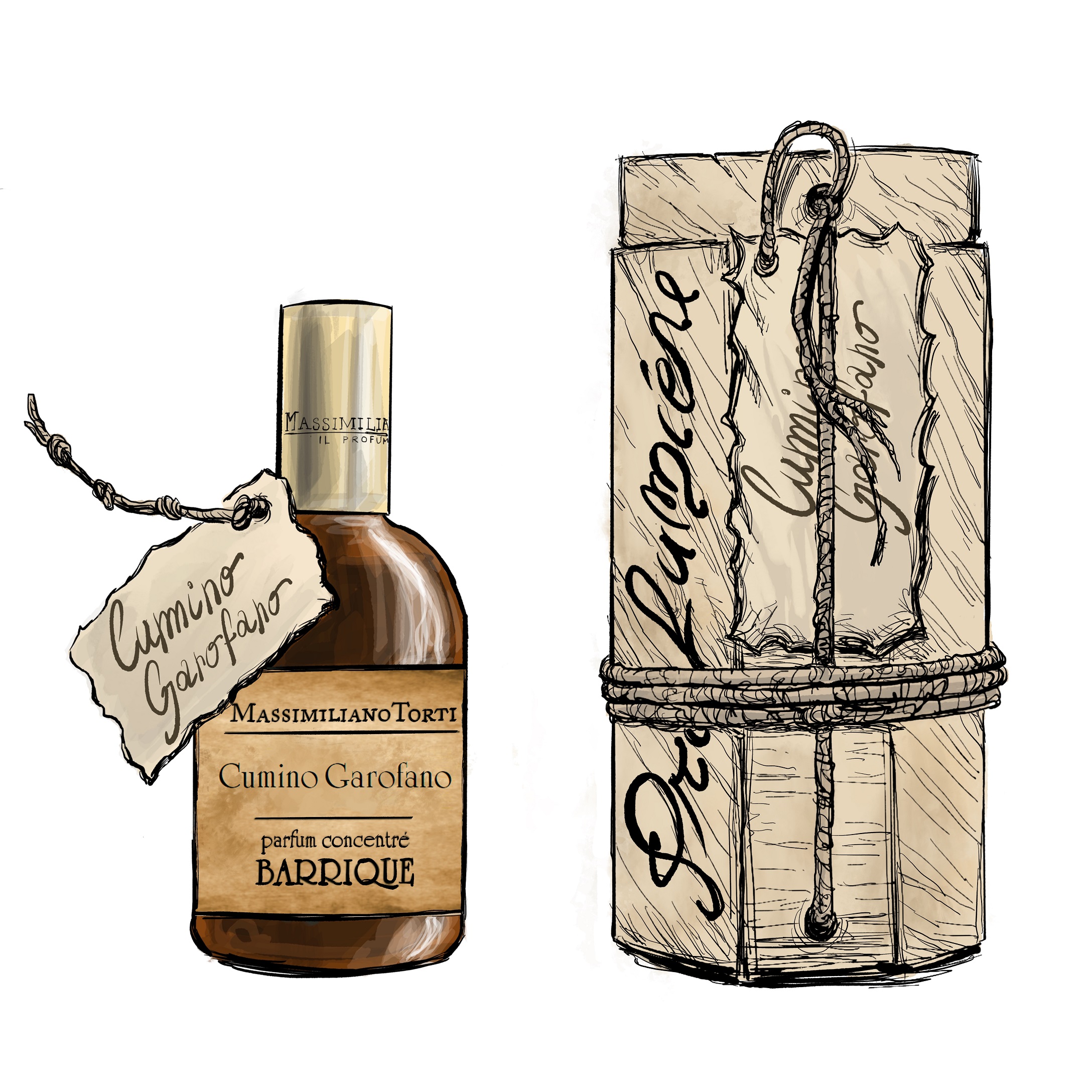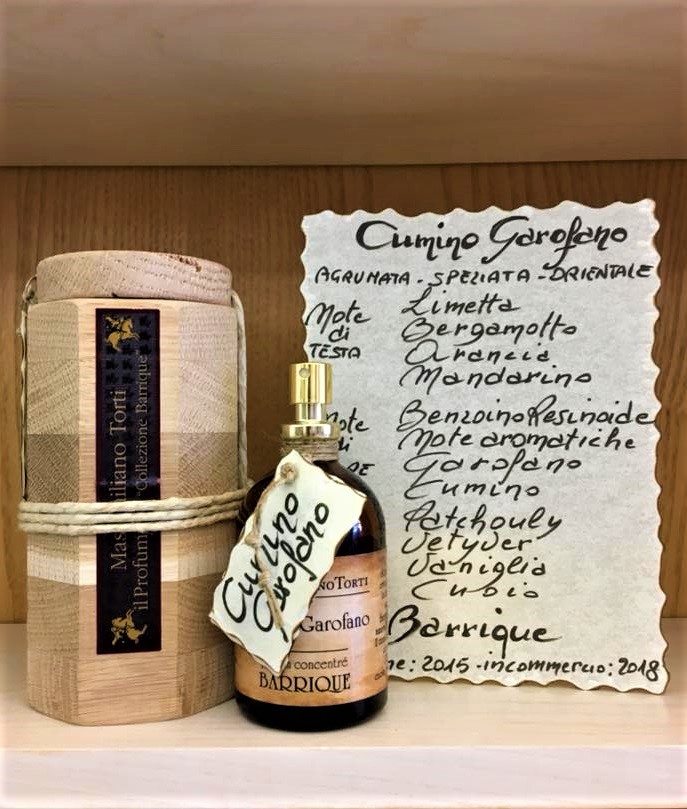 Limetta, bergamotto, arancia, mandarino, benzoino resinoide, note aromatiche, garofano, cumino, patchouly, vetyver, vaniglia, cuoio.