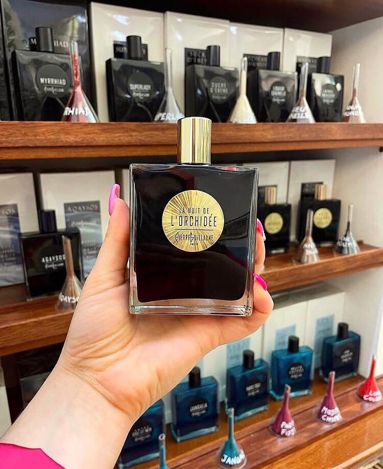 Pierre Guillaume crea una sensazione vertiginosa di cuoio liquido sulla pelle: il profumo inebriante dei baccelli neri di vaniglia baciati dal lampo in una notte tempestosa.