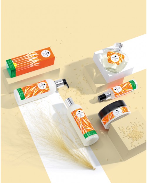 La sua formula, priva di parabeni e sles, è arricchita con estratti di riso e semi di lino, che svolgono un’azione altamente ristrutturante e riequilibrante, riportando la pelle al suo naturale equilibrio.