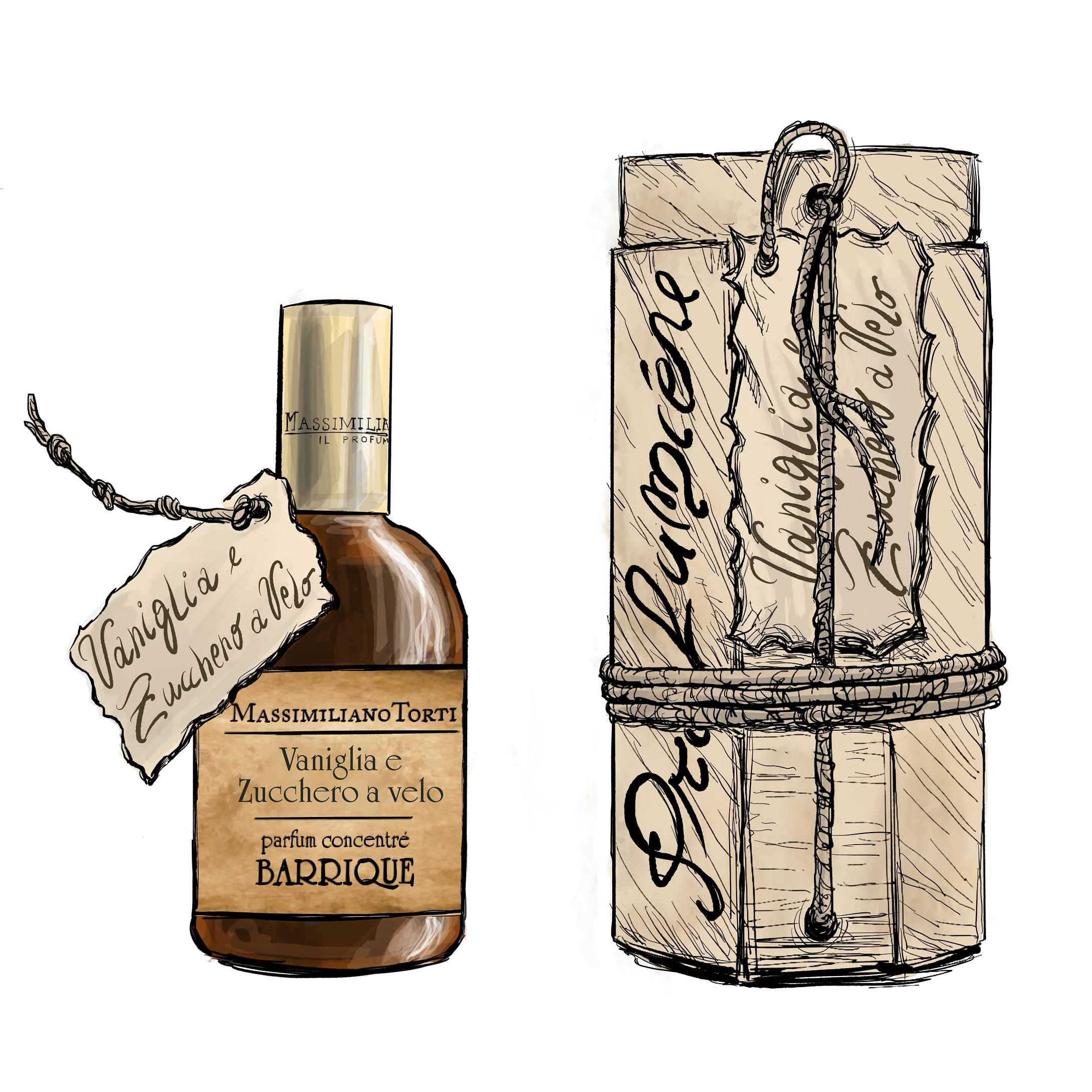 Vaniglia, zucchero a velo, limone, fiori d'arancio, gelsomino, petali di fiori bianchi, fava tonka, tabacco, muschi, ambra.
